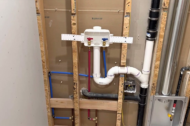 Water supply hoses, shutoff valves, hose bibbs, and connectors that keep washing machine hookups secure, dry, and ready for use.